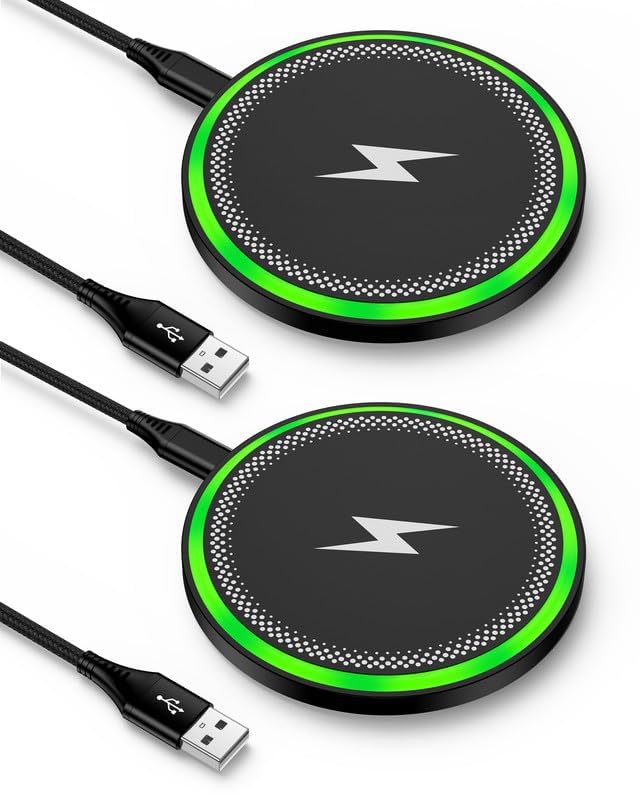 Unique Features – 2-Pack 15W Wireless Charging Pads 1. Dual Pad Convenience – Comes with two sleek wireless charging pads, perfect for home and office, or shared use with family. Charge two devices at once with fast, reliable performance. 2. Flat, Compact Design – Ultra-slim and lightweight design makes it easy to place on a nightstand, desk, or travel bag—no foldable parts, no bulk. 3. LED Charging Indicator – Soft breathing light shows charging status without being too bright at night—sleep-friendly and subtle. 4. Safe Wireless-Certified Charging – Built-in multi-protect safety system with over-voltage, over-current, over-heat, and short-circuit protection ensures your device charges safely every time. 5. Case-Friendly Use – Charges through most rubber/plastic/TPU cases up to 5mm without needing to remove your phone case. 6. Universal Compatibility – Supports multiple fast charge modes for a wide range of popular smartphones and earbuds. Charging Modes by Device 15W Fast Charging: Samsung Galaxy: S25 Ultra / S25 / S24 / S23 / S22 / S21 / S20 Series, Note 20/20 Ultra, Z Fold 5/4/3, Z Flip 5/4 Google Pixel: 10 Pro XL, 10, 10 Pro, 10 Fold, 9a, 9, 9 Pro, 9 Fold, 8, 8 Pro, 8a, 7, 7 Pro, 7a, 6, 6 Pro iPhone: 16e/16 / 16 Plus / 16 Pro / 16 Pro Max / 15 / 15 Pro / 15 Pro Max / 14 Series Others: Moto, LG, OnePlus (Wireless models), AirPods, Galaxy Buds, and all other Wireless-enabled devices Note: Pixel A-series models (like 6a, 5a, 4a), iPhone 7/6, Samsung A-series (like A13/A03s) do not support wireless charging unless using a Wireless receiver. Package Includes 2 × 15W Wireless Charging Pads 2 × 3FT USB-A to USB-C Braided Charging Cables 1 × User Manual Tip: For best performance, use with a QC 3.0 USB-A adapter (not included).