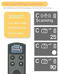 Compatible with canon Rebel EOS 850D(T8i), SL3 (ROS 250D), PowerShot V10, R8, R6 II, R100, R50, R10,R3, R5, R6, EOR RP, EOS R, 6D Mark II, 77D, 800D(EOS Rebel T7i), 200D(EOS Rebel SL2), M50 II, M50, M200, PowerShot SX70 HS, EOS M6 Mark II, 90D, PowerShot G7 X Mark III, PowerShot G5 X Mark II.If it can not paired with your camera,pls read the details or send us directly Multifunction:This wireless remote control compatible with Canon camera support immediate Release, 2-sec Delay Release,shooting videos, Fcous function(place the camera in manual focus mode),Zoom function( Compatible with the PZ-E1 Power Zoom Adapter for remotely adjusting zoom position and movement of the EF-S 18-135mm f/3.5-5.6 IS USM lens ) USB-C Rechargeable Remote for Canon Cameras This wireless camera remote for Canon comes with a built-in rechargeable battery and a versatile USB-C charging port, making it easy to power up using TYPE-C,Once fully charged, it delivers up to 10 hours of uninterrupted operation, ensuring consistent performance for your photography needs. The USB-C port also enables firmware updates, keeping the remote compatible with the latest camera models for long-term usability. Enhanced Clarity with OLED Display This wireless remote features a bright OLED screen that clearly shows all status indicators and settings. With instant visual feedback, adjustments and operation become effortless, allowing you to focus on capturing the perfect shot. Easy to Operate:Compatible with canon camera remote control operating range up to 10m/32.8ft in any direction, the wireless shutter release easy to carry,you can put it in your pocket, Use for a broad range of images, like low-light,self and family portraits, macro photography, shooting timid, aggressive or dangerous animials, Bulb Use for long exposures