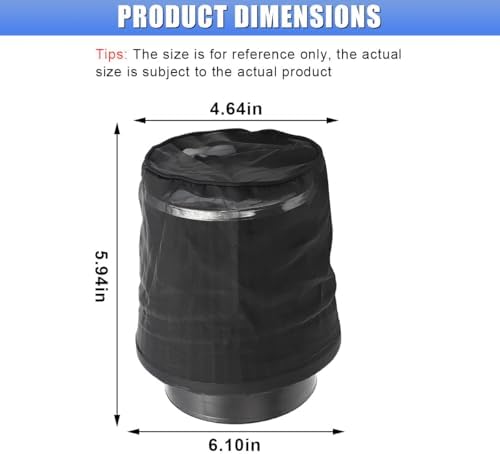 - 【Package Contents】: You will receive 1 car air intake filter cover, suitable for various common cylindrical high-flow air filters. To ensure a proper fit, measure the air filter's dimensions to avoid performance issues due to size mismatch.