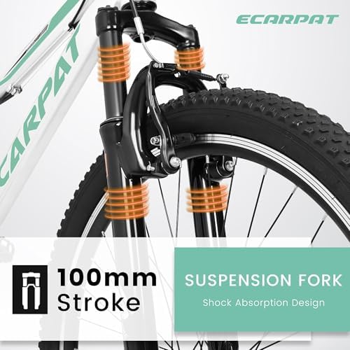- 【Powerful Dual Disc Brakes】 Ecarpat mountain bikes feature a mechanical disc brake system that ensures safety. Front disc brakes can greatly reduce the braking distance and ensure that you can stop immediately in case of emergency. Safety always first.