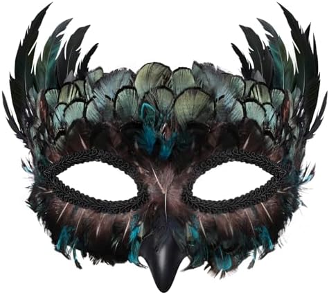 Masquerade Mask for Women/Men, Costume Feather Animal Mask Owl Bird Crow Halloween Mardi Gras Cosplay Party Raven Masque