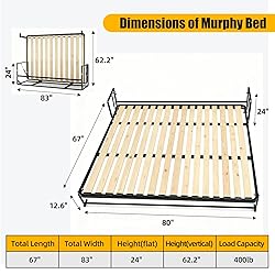 Complete Murphy Bed Kit: Unlike many other wall bed kits, our wall bed frame hardware kits include a sturdy steel platform with comfortable cambered wood slats to support your mattress. Heavy Duty Hardware: Our vertical mount murphy bed includes a tubular steel mattress frame for strength and improved weight distribution, with the capacity to support up to 500 pounds. And durable wood slats support and extend the life of your latex, memory foam, or spring mattress. Bidirectional Gas Springs: The upgraded bidirectional gas springs make it easier for you to pull down & close up the bed. Personalized Design Solutions: Customize your Murphy bed with decorative wood panels to match your decor style. Contact us to obtain design solutions tailored to your needs. Free-Standing or Wall&Floor Mount: Our Murphy bed stands alone with ease or anchors securely with pre-drilled holes for added stability. Note: This DIY murphy bed hardware kit is recommended for standard mattress sizes up to 12” thick.