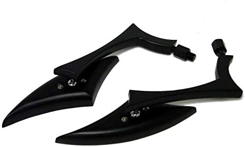 Upgrade your ride with these MotorToGo Custom Black Spear Rear View Mirrors for 2022 Suzuki AX100.MotorToGo Black Custom Spear Mirrors for 2022 Suzuki AX100.Mirror size(approx):5-1/4x1-5/8 inches..Material: Black Metal mirror house,metal stem.Mirror:Real Glass..Mirror body and stem color:Black.Mirror Glass color:Clear..Sold in pairs.Easy install.100% Brand New.Hardware inclusive.