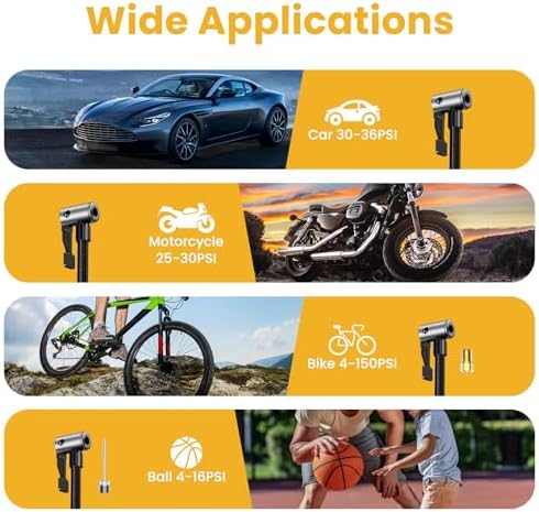 - Digital Precision & Auto-Shutoff – Features a clear digital PSI gauge and preset pressure settings. Automatically stops at your desired pressure to prevent over-inflation, ensuring safety and accuracy.