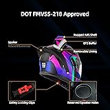 DOT-Certified Safety Protection: Motorcycle helmets meets rigorous DOT FMVSS-218 safety standards for all U.S. road use. High-strength ABS shell with impact-absorbing EPS core, making it a critical companion for every ride. Dual Visor System: Motorcycle helmet with bluetooth includes two interchangeable outer visors: clear for night/cloudy conditions and tinted for bright sun. Built-in, one-touch inner sunshield combats glare without blocking your view. Flip-Up Modular Helmet Design: Allows single-handed conversion from full-face to open-face mode. Enjoy effortless ventilation, conversation, or refreshments without removing your helmet. Integrated Rear Spoiler: Aerodynamic spoiler reduces wind buffeting, enhances helmets for adults high-speed stability, and minimizes rider fatigue during long journeys. Removable & Washable Liner: Stay fresh mile after mile. The soft, breathable interior and cheek pads are fully removable and machine-washable for lasting comfort and odor control. Bluetooth Headset Compatible (requires installation): Equipped with advanced Bluetooth 5.2 and noise cancellation for crisp audio and calls. Get up to 13 hours playtime or 2 hours talk time from just a 2-hour charge, plus 100-hour standby. Enjoy stereo sound, auto-answer, music streaming, and FM radio—making every ride more connected and fun.