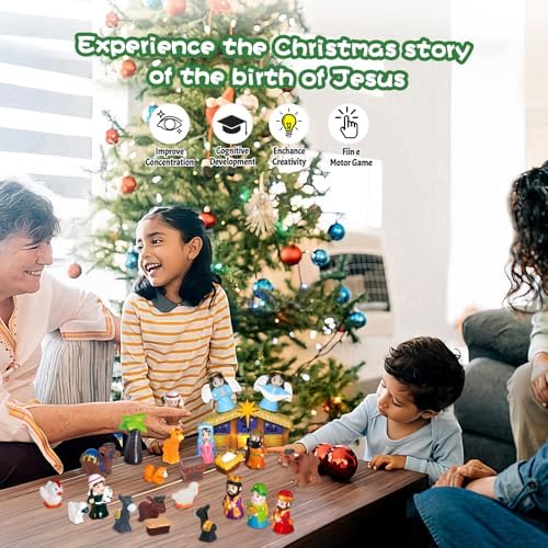 - 【A Deluxe Nativity Adventure】With 25 carefully crafted pieces—including Baby Jesus, Mary, Joseph, and more—your child can create a meaningful nativity scene that grows day by day, enhancing the anticipation and wonder of the season.