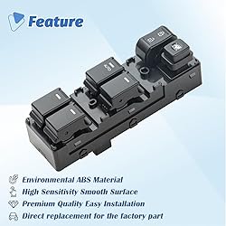 【Compatibility】This master window switch control button compatible with 10 11 12 13 14 KIA Sorento R 【Replace Part】This front left driver side master window switch replace vehicle KIA OEM Part No 93570-2P100VA, 935702P100VA 【Specification】① Terminal Connector: 16 pins; ② Button: 1 Auto & door lock & window control; ③ Installation Location: front left driver side; ④ Package Content: 1 x electronic window switch+ 1 x switch removal tool. 【Easy Installation】Plug and play style Just need to remove the defective switch and replace it, easy to install Please check your original switch thoroughly to ensure you are ordering the correct switch 【Purchase Without Worry】 If the master power window switch has any problems, simply contact us for giving you a satisfactory solution
