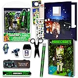 Minecraft School Supplies Set - Bundle with Creeper Folder, Notebook, Erasers, Stickers, and More | Minecraft Back to School Supplies Stationery Kit for Boys, Kids This Minecraft back-to-school set includes everything you need to be ready for the classroom, featuring everyone's favorite Minecraft characters like Steve, Alex, Creeper, and more. Includes a Minecraft portfolio folder, a one-subject 70-sheet notebook, Minecraft pencil case, eraser, pencil sharpener, folded ruler with stencils, 2 pencils, a twisty pencil, and scissors. The Minecraft school supplies set also includes Minecraft stickers, a word search bookmark, and a Rex-Man door hanger — perfect for Minecraft rewards, motivational stickers, party supplies, and party favors. Officially licensed Minecraft school supplies set for boys and girls alike. Manufacturer Minimum Age 3 Years and Older.