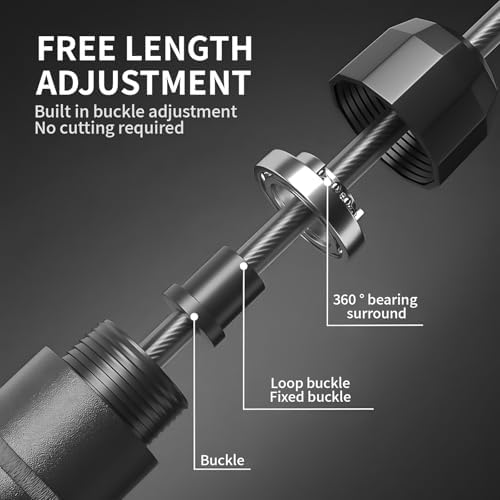 - Durable and Tangle-Free:The jump rope is made of steel wire coated with a strong PVC material, ensuring long-lasting durability even during prolonged exercise. It is equipped with high-quality ball bearings. It avoids the twisting, tangling, knotting or bending like other fitness ropes. It ensures a smooth and effortless spin, making every jump of yours effortless and smooth.