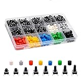 Complete Assortment Kit: Includes 210Pcs of high-quality tactile push button switches in 8 different heights (6x6x6.5H to 6x6x11.5H) and 210Pcs colorful button caps in 7 colors (White, Gray, Red, Yellow, Blue, Green, Black). Note: Switch head size may vary within tolerance. Some caps may fit loosely—use adhesive if a secure fit is required. 200,000-Click Lifespan & Crisp Feedback: Withstands up to 200,000 presses while delivering a satisfying “click” for reliable performance in circuits and control panels. Color-Coded Organization: Multi-colored caps help quickly identify buttons in complex setups. Compact & Durable: 6x6mm micro switches fit tight spaces while offering smooth, long-lasting actuation. Wide Compatibility: Ideal for electronics prototyping, custom controls, keyboard mods, and DIY repairs.