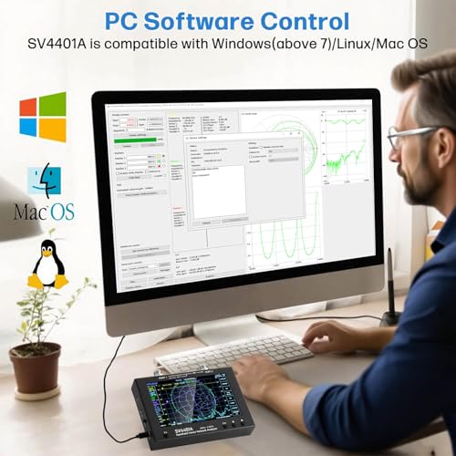 - [PC Software Control] The SV4401A VNA is compatible with Windows/Linux/Macos. Connect the VNA to your PC via the included USB Type-C cable, and you can use the serial port to control: set start/end frequencies, obtain measurement results, and adjust marking points effortlessly. Continuous firmware optimizations and updates—upgrade easily via virtual USB drive using the USB Type-C cable (2025 Latest Firmware Version: SV6301A_App_v0.7.1)