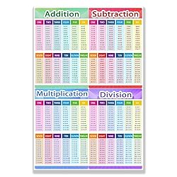 - Transform your classroom or study space into an organized learning environment with this comprehensive math operations chart set. These vibrant educational posters feature clear, easy-to-read tables for addition, subtraction, multiplication, and division, making them perfect for elementary and middle school students. Each section is color-coded and systematically arranged from 1 to 12, allowing students to quickly reference basic math facts. The addition and subtraction charts display sums and differences up to 12, while the multiplication and division tables show products and quotients through the 12 times tables. Division of areas and organized layout help students build confidence in their mathematical abilities through visual learning. These durable wall charts serve as excellent teaching aids for both classroom instruction and independent study, providing a constant reference for students as they master essential arithmetic operations. Ideal for teachers, homeschooling parents, and anyone looking to support children's mathematical development.