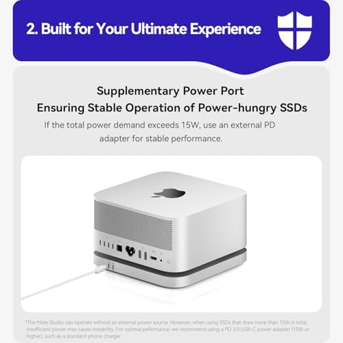 Mate Studio Stand-A 80Gbps SSD Expansion Dock for Mac Studio – Aluminum Alloy Stand with Dual PCIex2 M.2 Slots (16TB max), 80 Gbps USB-C & PD 3.0 Port – Frost Silver