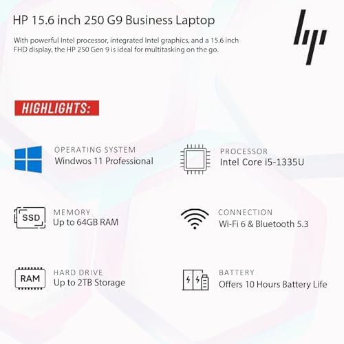 HP 250 G9 15" FHD Business Laptop, Microsoft Office 365 Included, Intel Core i5-1235U 10-core Processor, 32GB RAM, 1TB SSD, Ethernet Port RJ-45, SD Card Reader, Wi-Fi 6, Windows 11 Pro, WOWPC USB
