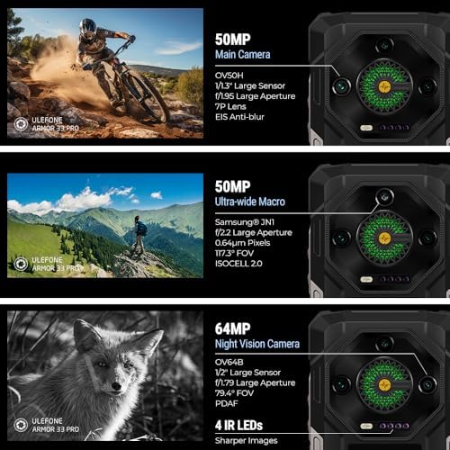 - 32GB RAM + 512GB ROM + MTK Dimensity 7300X + Dual 5G + Android 14: Powered by the MediaTek Dimensity 7300X (4nm processor) and 16GB RAM (expandable to 32GB), the Ulefone Armor 33 Pro outdoor smartphone Android masters 14 demanding apps and games. Store your whole life with 512GB internal memory (expandable to 2TB). Stay one step ahead with dual 5G and the AI-powered security of Android 14.