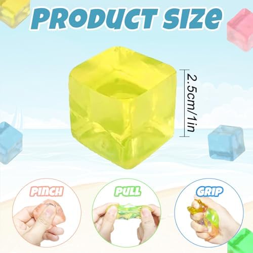 - 【Stress Cube Squishy Toys】 24 individually packaged mini ice stress balls, colors of “random” color selection sensory toys, individually packaged for a clean product, cube shaped stress relief toys come in a variety of vibrant colors to suit different preferences and style.