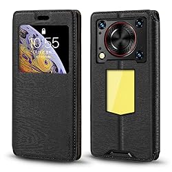 Shantime Viewable Window Leather Flip Case Compatible with Oukitel WP56 5G, Elegant Design Clear Display Invisible Magnetic Cover and Card Slot(Black)