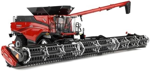 Introducing a can't-miss one-time production replica: the Case IH AF11 Intro Edition Combine. This exceptionally detailed 1/32 scale combine is equipped with front tracks and comes with both a 16R30 corn head and the MacDon FD250 draper head. Its features include a poseable feeder housing, foldable unloading auger, openable right side body panel, oscillating rear axle, tie rod steering, clear cab windows, openable cab door and a detailed cab interior. Made by ERTL, this combine is a replica recommended for ages 14+ years - it is for display only and is not for play.