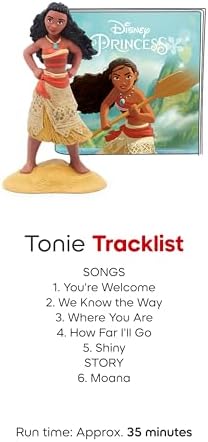 - Bundle includes a Sky Blue Toniebox 2, 8.6” [22cm] USB-C charging cable, and Moana, Ariel, Merida, and Belle Tonie Figurines. Power Adapter, longer charger cable, and additional Tonies sold separately. Wi-Fi needed for initial set-up. The USB-C Charging Cable is 8.6" to meet child safety standards for little listeners aged 1+.