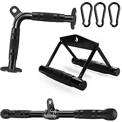 💪【Lat Pulldown Attachments Set】: Includes: 1x Double D Handle, 1x V-Shaped Bar, 1x Straight Rotating Bar and 3x Snap Hooks . These home gym accessories for men and women are designed to fit most cable systems. 💪【With Grip Lat Pull Down Bar】:Our rubber handle with efficient Grip design on both sides has a balanced curvature that creates feeling of solid grip, prevent slipping during workout even with sweaty hands.It can better exercise your grip, shoulders, and back. 💪【TOP PROCESS & MATERIALS 】- Cable machine attachment constructed of high-quality solid steel with polished chrome finish. 0.6 inch hole can fit easily for all cable system. Textured rubber coating handle,provides ergonomic & secured grip during workout, provides a balanced force to both arms when attach it to any gym machine. 💪【MULTI WORKOUTS】-Tricep pull down attachment perfect for building stronger triceps and grip strength, assisting muscles around elbows, wrists, back, abs and shoulders with different compound pushing exercises: triceps pushdowns, seated cable rows, straight bar cable pressdown, seated upright rows, perfect for both workout at home and gym. 💪【ALL LEVEL APPLIED】: LAT Pull Down Attachment can be used for all gym levels, from beginner to professional,this exercise equipment will help you focus on the target muscle groups rather than putting unnecessary stress on the joints.If any questions, our order support the all-the-way tracking service on amazon. We guarantee fast customer service and only wish our customers satisfaction.