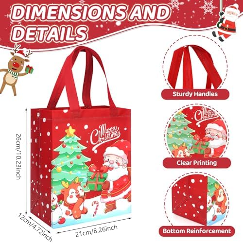 - Wide Applications: These Christmas Tote party bags are very suitable for most sizes of gift packaging, you can use it for Christmas parties, holiday gifts, Christmas gift packaging, Christmas decorations, wine bottle gift packaging, large gifts, friend gift bags, hospitality bags, they can hold any gift for Christmas or for kids.