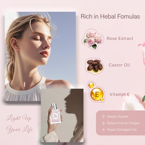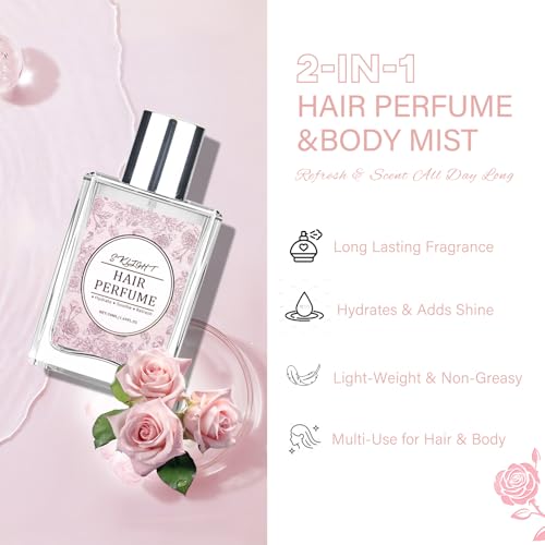 - [MILD AND GENTLE ON SKIN] This rose hair perfume spray is mild and gentle, tames frizz hair. This hair and body mist is mild formula, works gentle both on hair and skin. Lightweight texture, no sticky or greasy, perfume hair oil revitalizes your hair with each spritz.