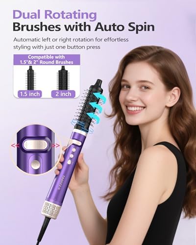 - 【Auto Rotating Hair Dryer Brush】The 1.5" & 2" rotating blow dryer brush spin in both directions for effortless shaping, volume, or curl. Whether you want sleek, voluminous, or wavy styles, this hair dryer brush reduces arm fatigue and gets the job done faster