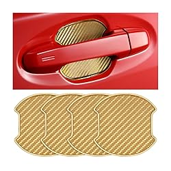 Mandark Car Door Handle Cup Scratch Protector, 4PCS 3D TPU Carbon Fiber Vehicle Door Bowl Sticker, Automotive Handle Paint Protective Film Cover, Universal Fit (Golden, Large)