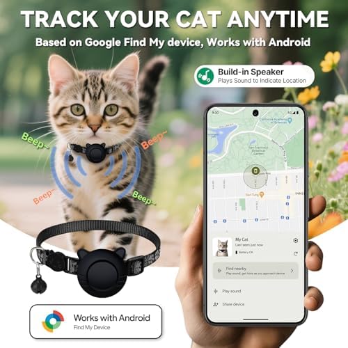 - **Advanced Cat Tracker GPS Collar**: Elevate your pet's safety with our Google Certified Cat Tracker GPS Collar, designed specifically for Android devices. Seamlessly integrate with the "Find My" app (requires Android 9 or higher) for reliable real-time tracking of your feline friends.