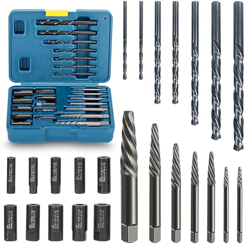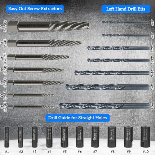 - 【Efficient combination】Our multi-size extractor set includes 7 HSS left-hand drill bits and 7 spiral screw extractors and 10 drill bit guides,which equip you with the right tool for the job,whether it's auto repair, home renovation or mechanical maintenance.
