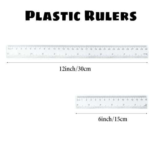 Ruler 12 Inch,12 and 6 Inch Ruler Clear Plastic Rulers with Inches and Centimeters School Office