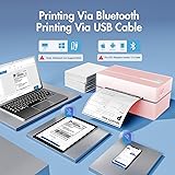Bluetooth Thermal Shipping Label Printer: 4x6 Wireless Label Maker with Tape for Small Business - Compatible with iPhone, Android, Windows & Mac, Widely Used for USPS UPS Ebay Amazon Shopify, Pink