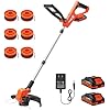 - 【2x 2.0Ah Batteries and Fast Charging】Comed with 2 x 2.0Ah lithium-ion batteries, power through tough jobs with our longest-lasting string trimmer. Dual batteries provide 50% more runtime than single battery, delivering 30+ minutes of cordless freedom for your yard