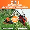 - 【2-in-1 String Trimmer & Edger】VARSK Professional string trimmer effortlessly converts between trimming and edging modes, simply press the 90° rotation button and rotate the aluminum tube 90° to the left. Saving you time and money on separate yard tools. With the 8700RPM advanced motor, it will help you finish multiple works for your lawn, garden, yard, etc