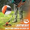 - 【Lightweight and Adjustable Design】Weighing just 5.3 lbs, this easy-to-maneuver string trimmer features a 180° adjustable handle and 80° pivoting cutting head for multi-angle operation. You can use it in many hard-to-reach places. The integrated stabilizer wheel ensures professional edging results with balanced control, making tight space trimming effortless