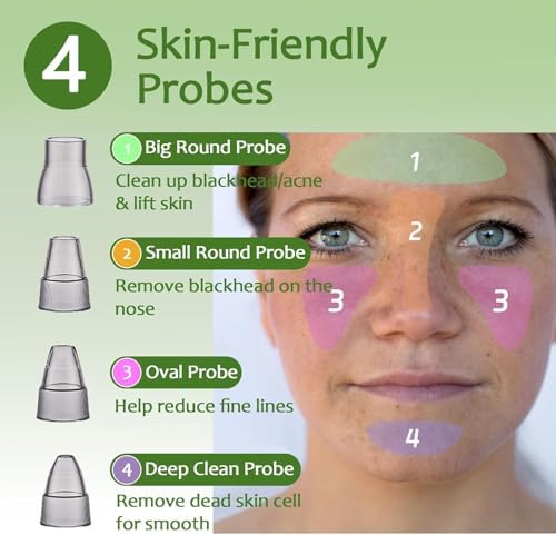 - 【Efficient Cleansing Tools】: The Blackhead Remover Vacuum provides a strong yet gentle deep facial cleansing experience, effectively removing blackheads, whiteheads, dead skin, acne, excess oil, and makeup residue for a clearer complexion.