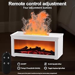 Fireplace Essential Oil Diffuser Humidifier - Ultrasonic Aroma Diffuser with 7-Color Flame Effect, Remote Control & Auto-Off Timer for Bedroom, Home Office,Yoga(White)