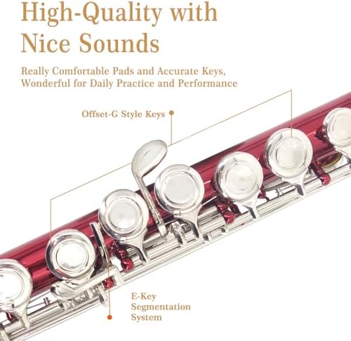 - Crystal-Clear Tone: Nickel-plated flute features an ergonomic offset G key design and a split E key for easy playing of high E notes. The flute produces a pure, bright tone with precise intonation and excellent sound quality