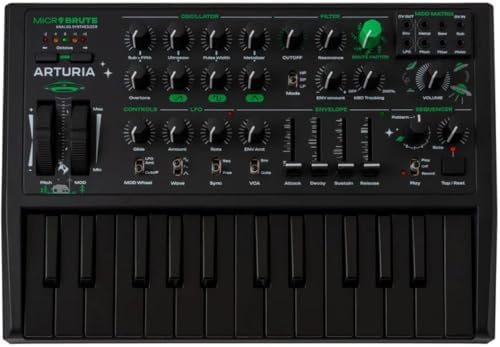 Delivering raw analog power with an extraterrestriaol edge, the MicroBrute UFO is a monophonic synthesizer keyboard from Arturia that features a 25-note mini keyboard and an all analog signal path. It features a compact design and a multi-wave analog oscillator with mixable waveforms. The MicroBrute's single analog oscillator, is capable of generating sawtooth, square, and triangle wave shapes simultaneously and allows you to blend them together to create complex waveforms. The iconic Steiner-Parker filter provides character, while the built-in 64-step sequencer allows you to input notes one at a time to create rhythmic patterns. The synth also features a low-frequency oscillator (LFO) with switchable square, saw, and sine waveforms and an adjustable rate. Its destination is set to modulate the pitch of the oscillator by default, and it has a depth control for adjusting the amount of modulation. It has internal memory that is capable of storing up to 8 different patterns, and the sequences can be backed up to your computer using the included editor software. Bundle with Polsen HPC-A30 Closed-Back Studio Monitor Headphones, Kellards MID-P10T Pro MIDI to MIDI Cable 10 Feet. What's in the box Arturia Micro Brute UFO 1x AR540102 Analog Synthesizer1x Power Supply2x Mini-Jack Patch Cord Polsen HPC-A30 Closed-Back Studio Monitor Headphones1x POPCA30MK2 Monitor Headphones1x 1/4" Adapter Kellards MID-P10T Pro MIDI to MIDI Cable 10 Feet1x KelMID-P10T MIDI Cable