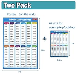 LARGE SIZE: Extra large 17 x 24 inch educational math posters perfect for classroom walls and learning spaces EDUCATIONAL DESIGN: Comprehensive multiplication tables chart designed for high school and college students VERSATILE DISPLAY: Vertical orientation with wall mount capability, ideal for classrooms and study areas QUALITY MATERIAL: Printed on glossy paper with high clarity and durability for long-lasting educational use COMPLETE SET: Includes 2 pack of unframed multiplication posters for enhanced learning and visual reference