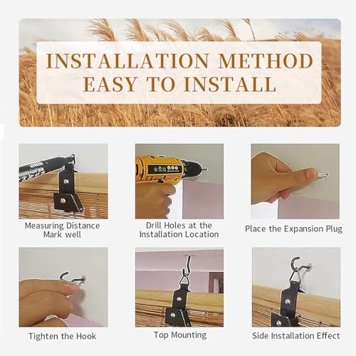 - [Easy to Install] The natural blinds roll up shade come with hooks and lifters, the drawstring design is easy to use, and the included hooks are easy to install, perfect for home and garden use. Reed curtains can be used with dry or wet cloths. Beautiful and durable, can be used for a long time.