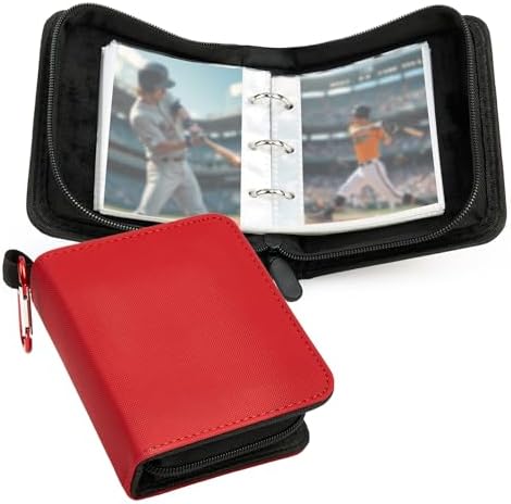 Mini 1-Pocket Trading Card Binder, Holds 80+ Cards with 40 Removable Sleeves, Small Zipper Card Album Case for TCG, MTG, Pokémon, Yugioh, Sports Game Cards, Gift for Kids & Collectors (RED-ZS)