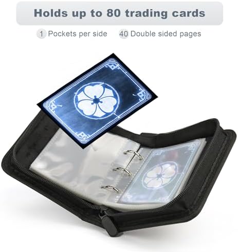 - 【80-Card Capacity with Removable Pages】This compact 1-pocket card binder holds up to 80 standard-size trading cards (2.5" x 3.5") using 40 double-sided removable sleeves. The top-loading design ensures easy access while keeping your cards secure—ideal for TCG, MTG, Pokémon, and sports card collectors.