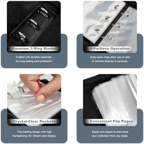 - 【Clear, Acid-Free Card Sleeves】Includes crystal-clear, non-PVC, acid-free sleeves that keep your valuable cards protected from dust, fading, and scratches. Whether you're a casual player or serious collector, this binder ensures your cards remain in mint condition.