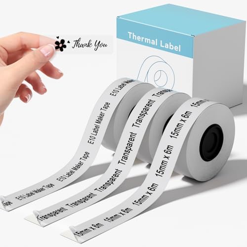 3 Rolls Compatible with SUPVAN E10 & E11 Label Maker Tape, Transparent,Continous 0.59in x 19.68ft (15mm x 6m), Standard Laminated Thermal Label Tape Refill,Replacement for SUPVAN E10 & E11