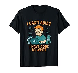 - Dive into coder life with this funny STEM design showcasing a cartoon person at a desk surrounded by code snippets and stacks of unwashed dishes. Rendered in bright orange, teal, and white on black, the bubbly comic sans-inspired text reads I Cant Adult I Have Code To Write with playful bit-style accents. Ideal for programming fans, math and engineering enthusiasts, or anyone in computer science, this art captures late night coding humor and developer culture. Perfect for adding a touch of geek charm to your favorite gear or accessories. Celebrate the ups and downs of coder life with this bold, eye-catching print made for software engineers, IT specialists, and anyone who loves a techy laugh.
