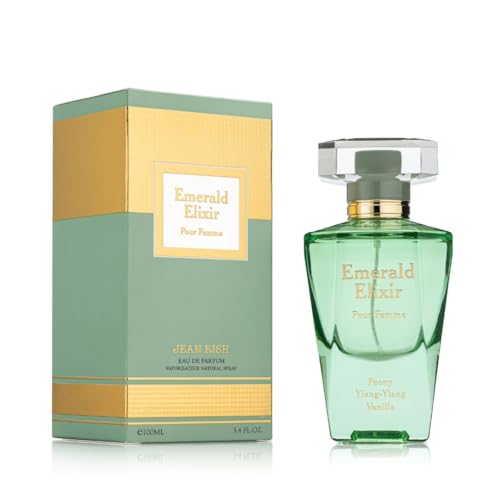 Jean Rish Emerald Elixir, Eau De Parfum for Women (3.4 Fl Oz / 100ml) with Peony, Ylang Ylang, Vanilla - Long Lasting and Luxury Fragrance, Made in USA