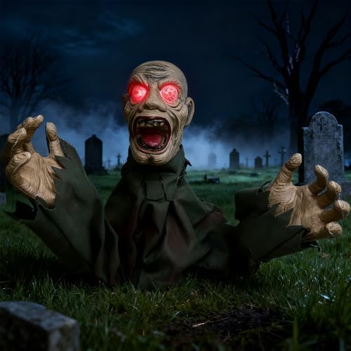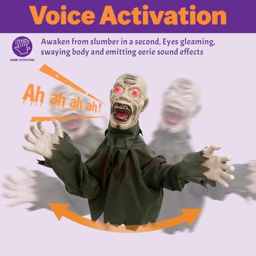 - Halloween Scary Zombies Outdoor Decorations, Voice Activated Animated Prop with Glowing Eyes, Swaying Motion & Bloodcurdling Shriek Sound for Yard, Lawn, Patio, Garden, Haunted House Party Prank Decor