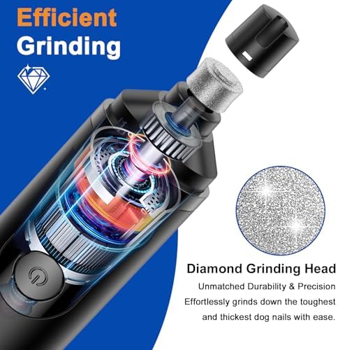 - Ultra Low Noise & Vibration: Adopt precision motor, low vibration and ultra quiet design, during dog nail grinder operation, the noise is less than 45db. your dog will not afraid, you can easily and quickly grinding their paws