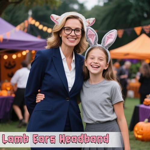 Lamb Sheep Ears Headband and Tail - Sheep Costume Accessories Women Adult, Halloween Party, Cosplay & Dress-Up Knit
